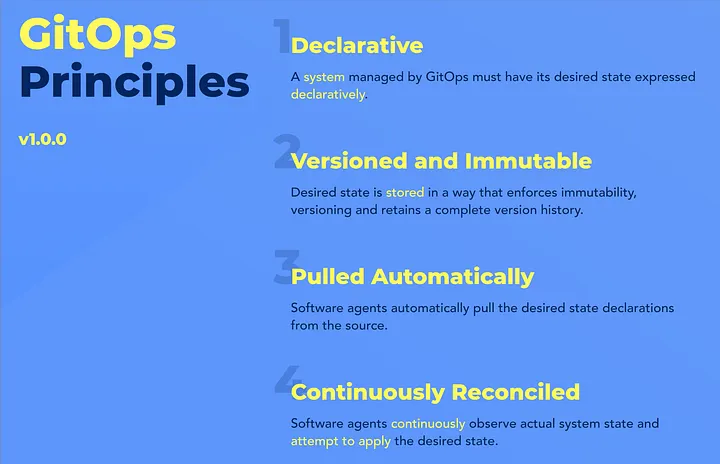 Argocd In Actions을 읽고 공신력 있는 사이트들의 말에 따라 GitOps의 원칙을 다음과 같이 정리했습니다.