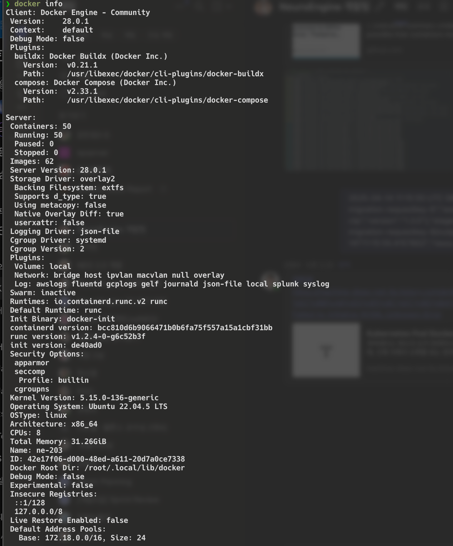 그리하여 확인한 결과 os의 버전은 똑같았고 nvidia-driver와 관련된 라이브러리 등의 버전은 모두 동일했으나 이를 운영하는 docker의 차이가 존재하지 않을까?라고 생각하여 확인한 정보는 다음과 같습니다.