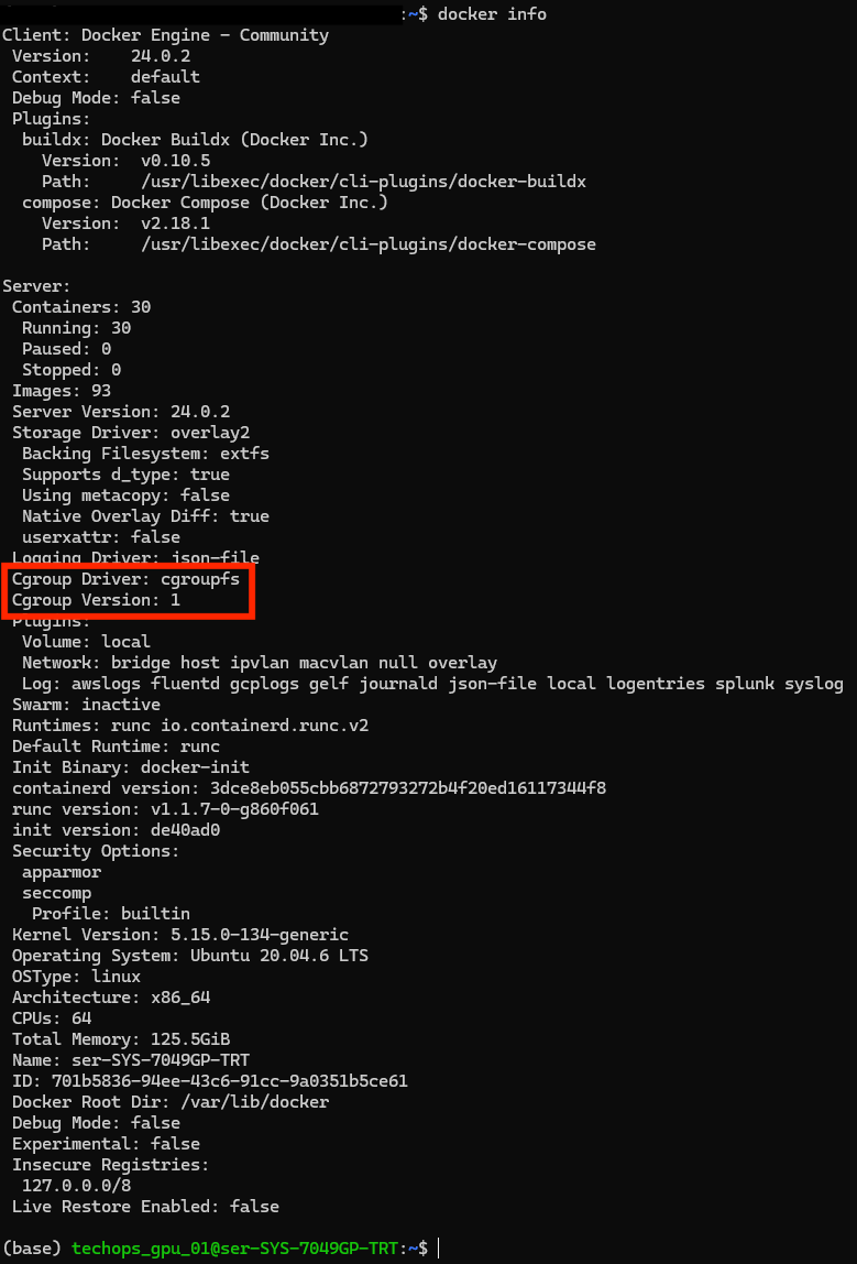 - Cgroup Driver / Cgroup Version을 확인합니다.
